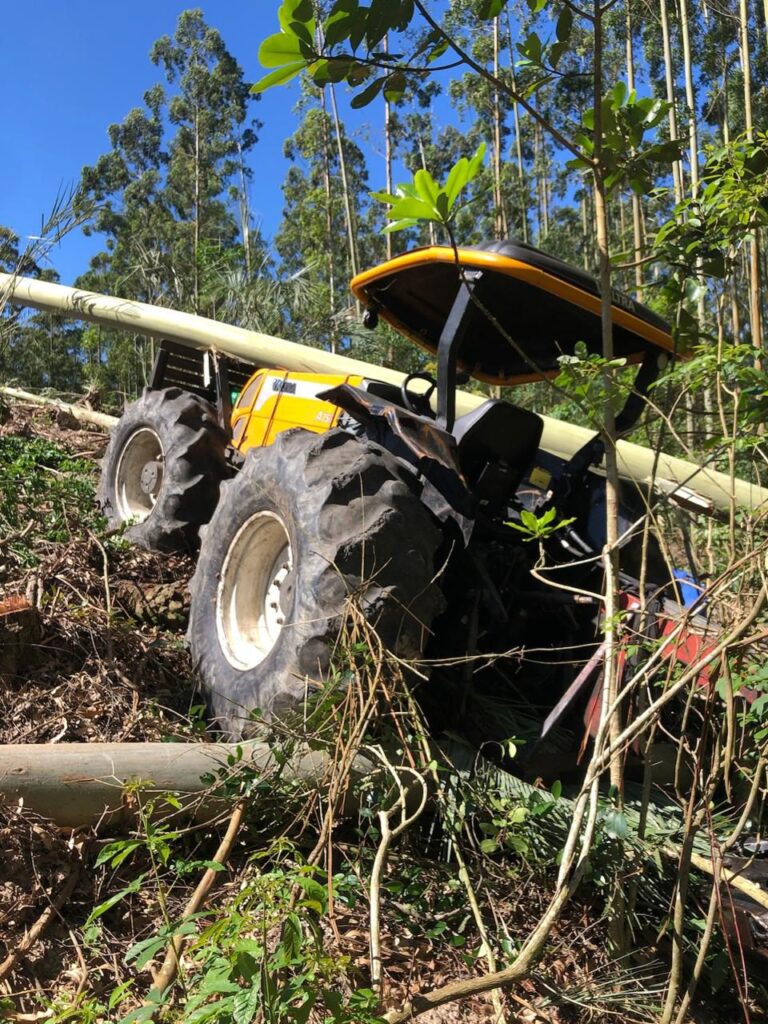 De acordo com a corporação, um homem de 43 anos morreu após ser atingido e prensado por uma árvore. Quando a equipe chegou ao local, a vítima já estava em óbito.