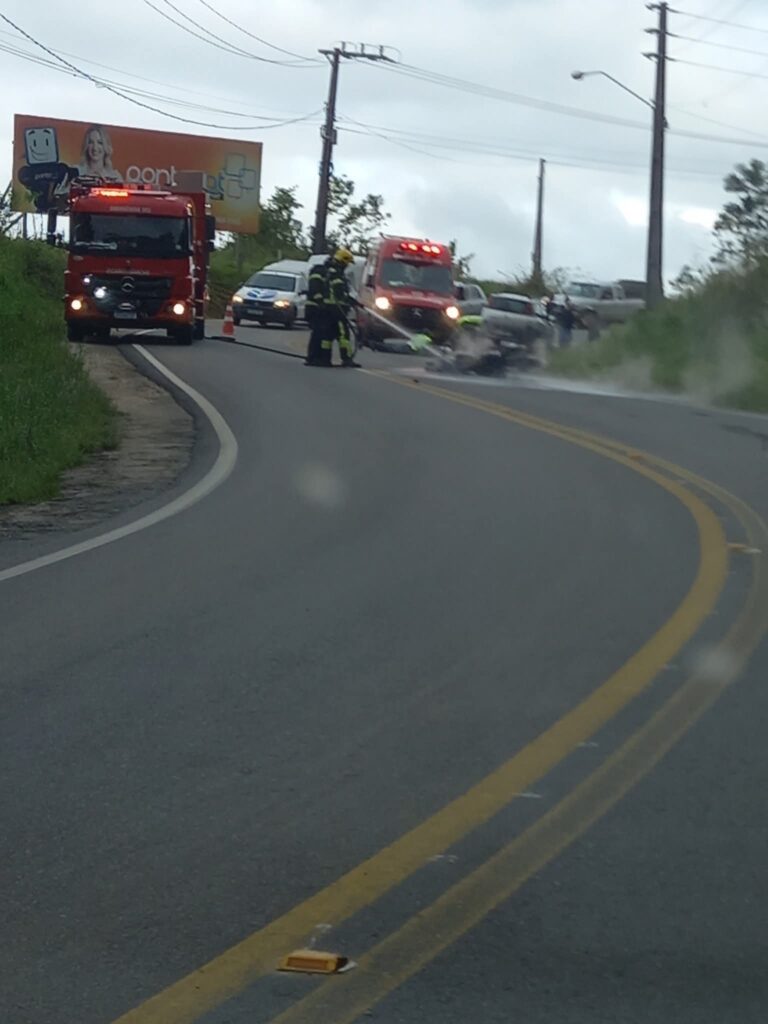 O acidente envolveu um Volkswagen Gol, conduzido pelo idoso, e uma motocicleta Honda CB 300, de cor preta, pilotada por um homem de 53 anos, natural de São José. Segundo os bombeiros, após a colisão, a motocicleta pegou fogo. O condutor da moto sofreu um ferimento no pé esquerdo e foi encaminhado ao hospital de Imaruí para atendimento médico.