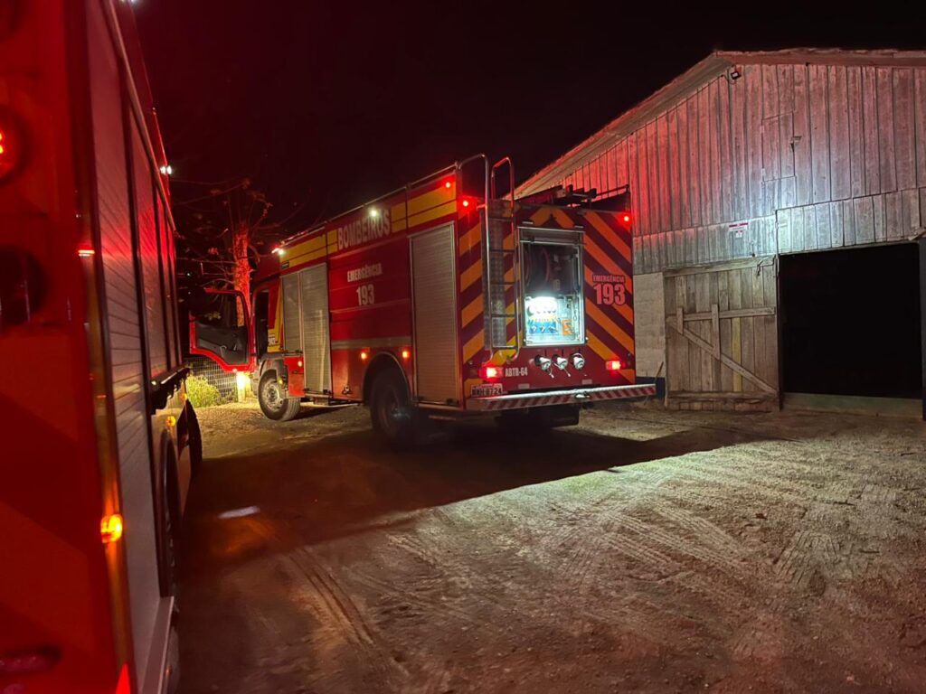 Um incêndio de grandes proporções atingiu um aviário na noite de quarta-feira (3), na Estrada Geral Linha Pacheco, zona rural de Urussanga. A ocorrência foi atendida por equipes do 8º Batalhão de Bombeiros Militar, com apoio das unidades de Orleans e Urussanga.