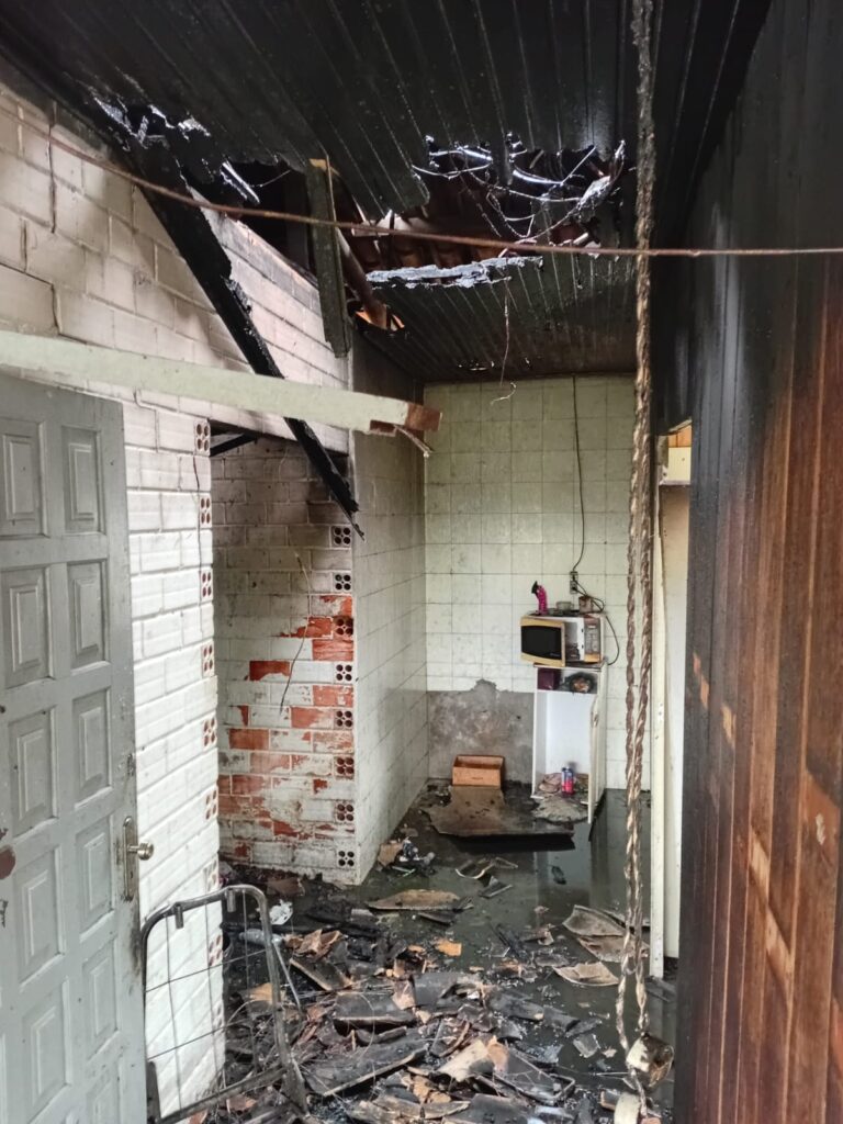 Ao chegarem, os bombeiros confirmaram que o imóvel, de aproximadamente 30 m² e construído em alvenaria, ainda apresentava focos de chamas, principalmente na região superior, atingindo o forro. Moradores tentavam combater o fogo com baldes de água e uma mangueira de jardim, mas sem sucesso devido à intensidade do incêndio.