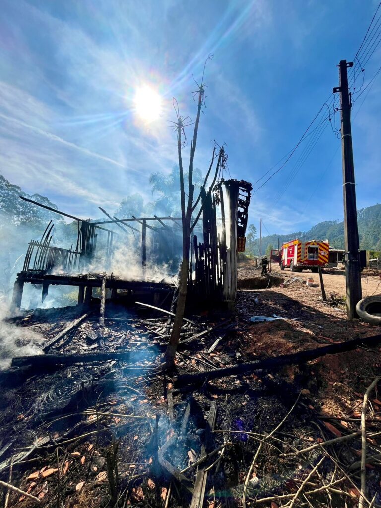 Uma residência de madeira foi completamente destruída por um incêndio no início da tarde desta sexta-feira (1º), no bairro Pindotiba, em Orleans. A ocorrência foi atendida por volta das 12h50 pelo 8º Batalhão de Bombeiros Militar, por meio da guarnição de Orleans, com a viatura ABTR-64.