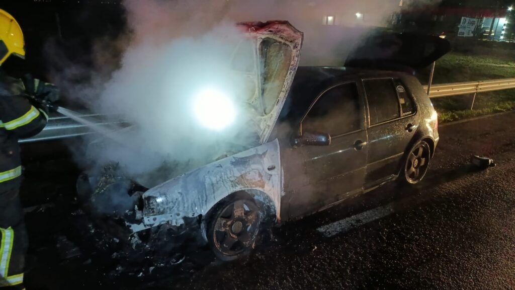 Um princípio de incêndio em um automóvel mobilizou o Corpo de Bombeiros na noite desse sábado (18), na BR-101, altura do bairro Esplanada, em Içara. A ocorrência, registrada por volta das 20h50, envolveu um Volkswagen Golf que começou a pegar fogo na parte dianteira, onde fica o motor.