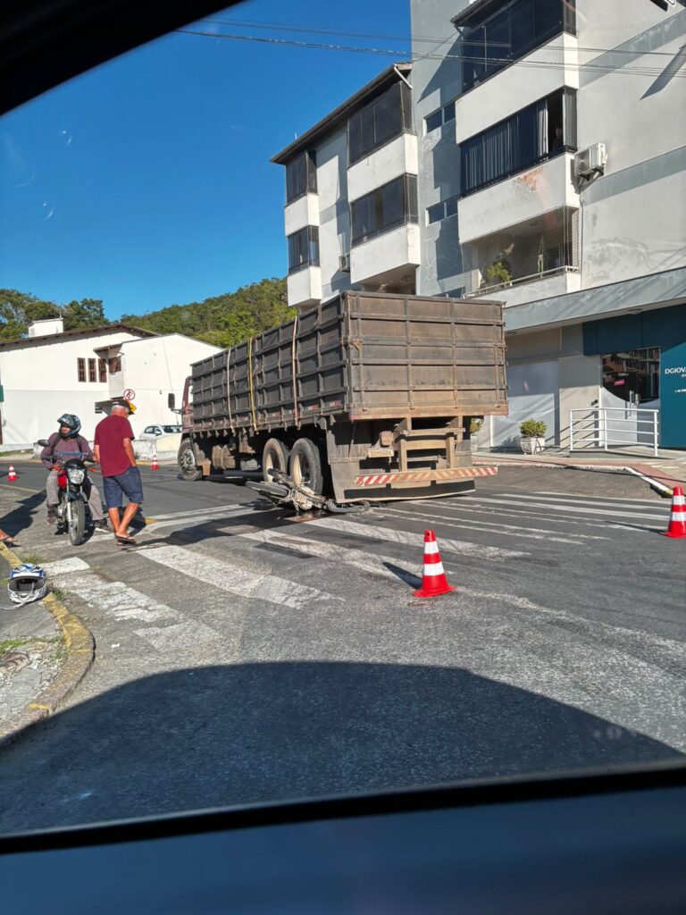Um motociclista ficou ferido após um acidente envolvendo um caminhão na manhã desta sexta-feira (5), no Centro de Urussanga. A colisão ocorreu no cruzamento entre a Rua Barão do Rio Branco e a Rua Joaquim Vieira Ferreira.