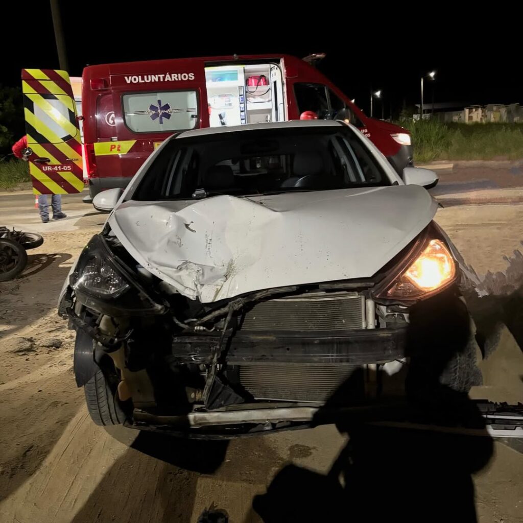 Um motociclista de 23 anos ficou ferido após uma colisão entre carro e moto na noite de sábado (21), na Rodovia Claudino Abel Botega, no bairro Camacho, em Jaguaruna. O acidente foi atendido pelos Bombeiros Voluntários por volta das 22h30.