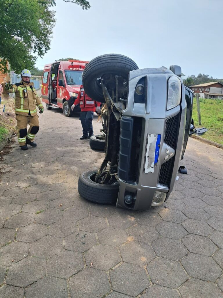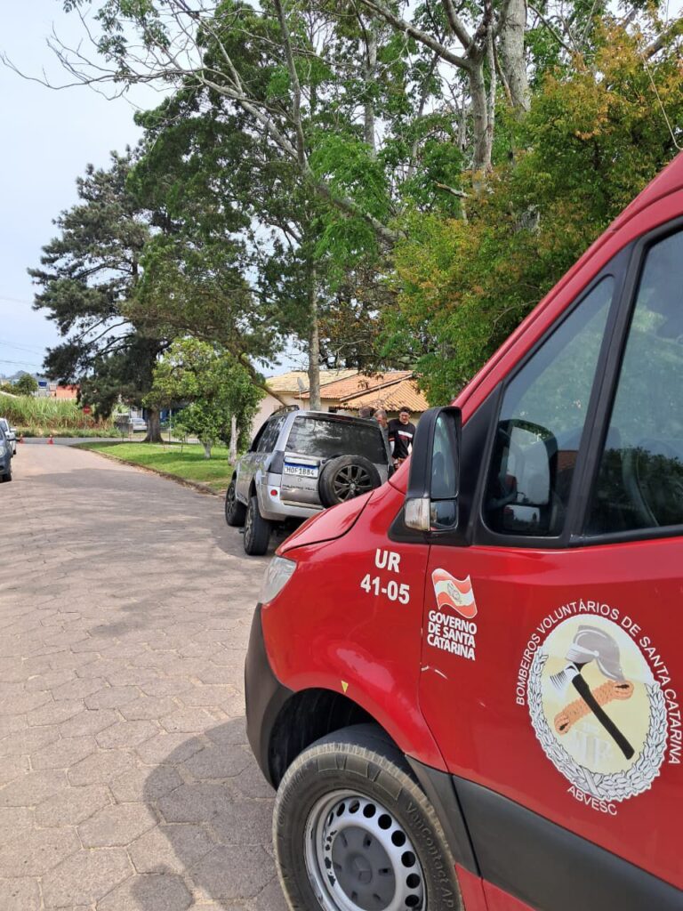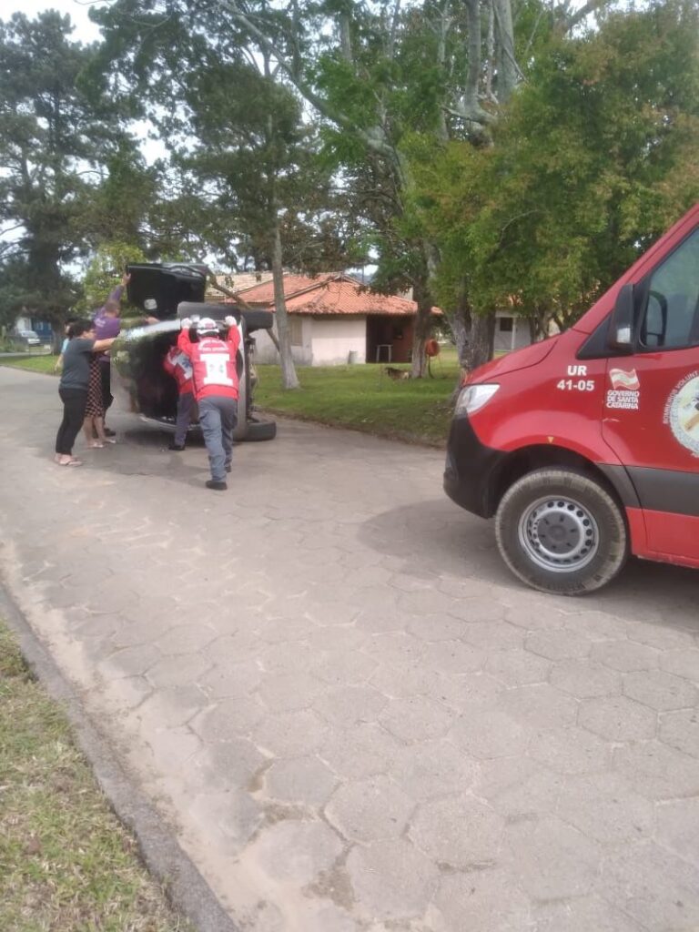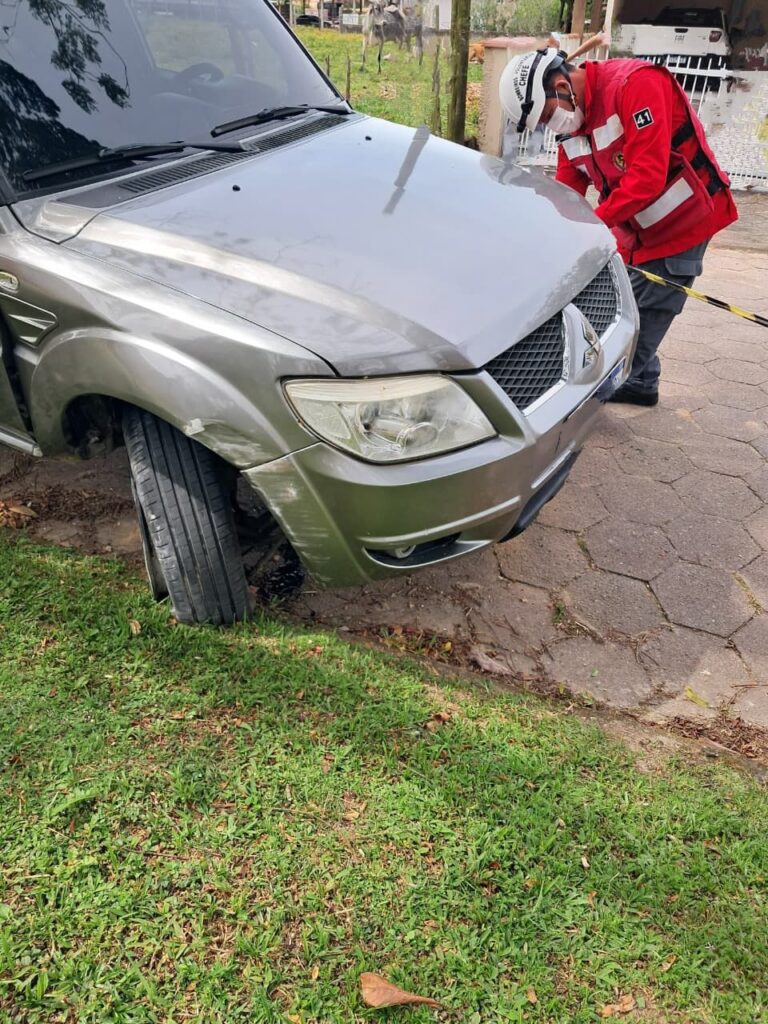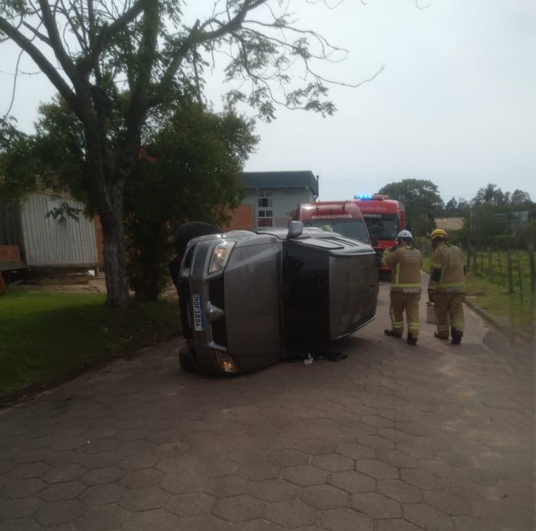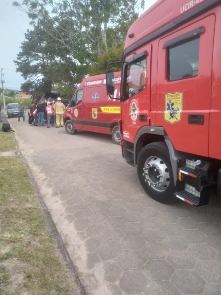 Um acidente de trânsito mobilizou os Bombeiros Voluntários de Jaguaruna nesta segunda-feira (15), no bairro Encruzo. O caso ocorreu na Rua Manoel Medeiros, ao lado da sede da corporação.