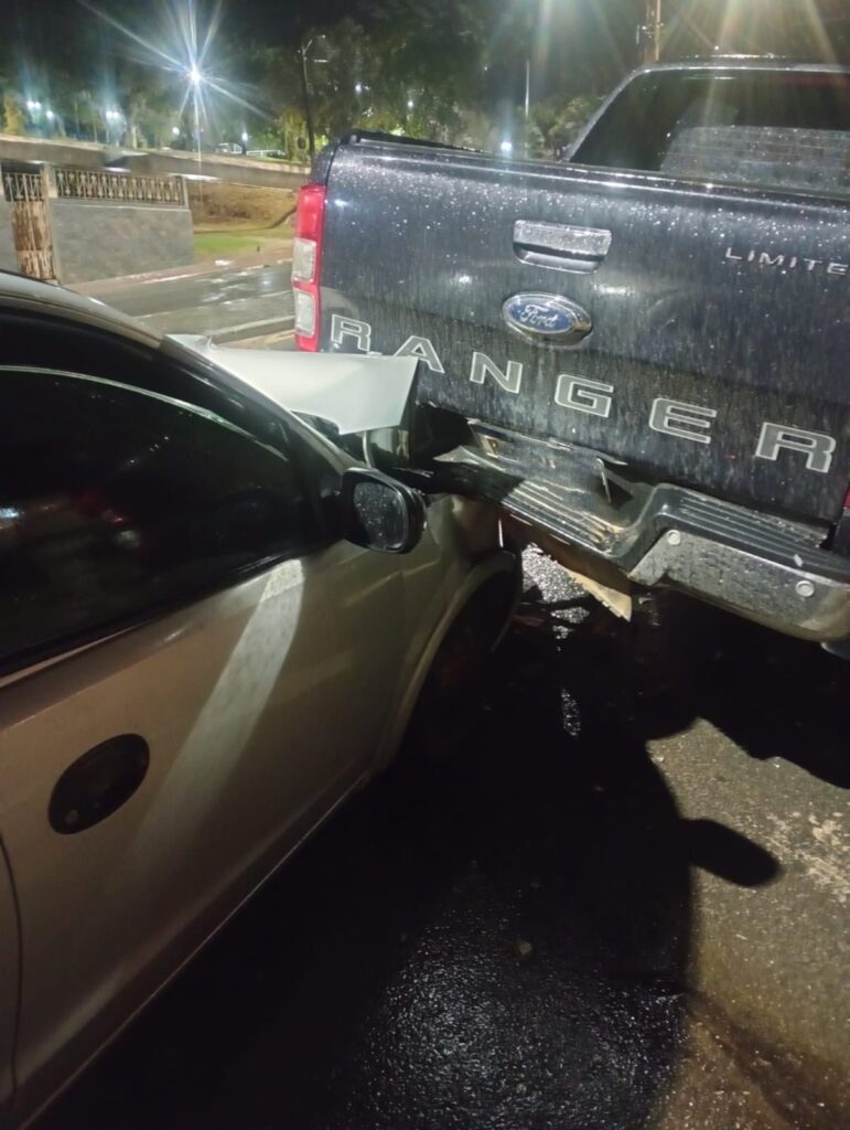 Uma colisão traseira entre dois veículos foi registrada na noite de sábado (29), na Avenida Sete de Setembro, no Centro de Treze de Maio. O acidente envolveu um Chevrolet Corsa, com placas do município, e uma Ford Ranger, que estava estacionada no momento da batida.