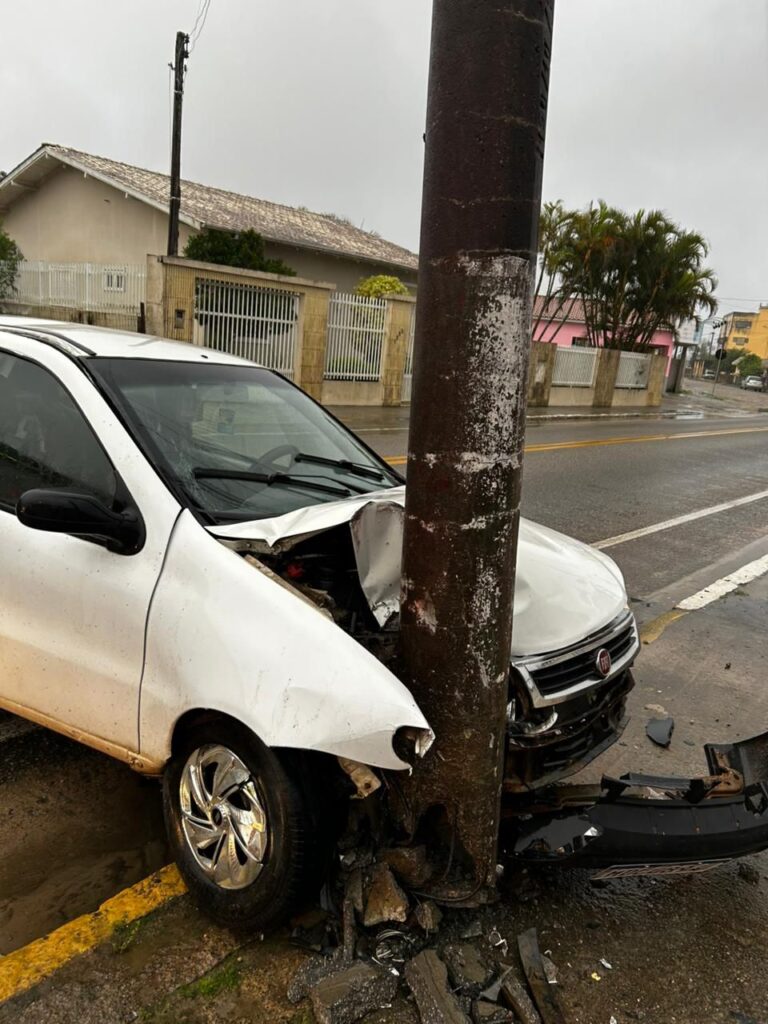 Motorista sai ileso após colidir carro contra poste em Jaguaruna