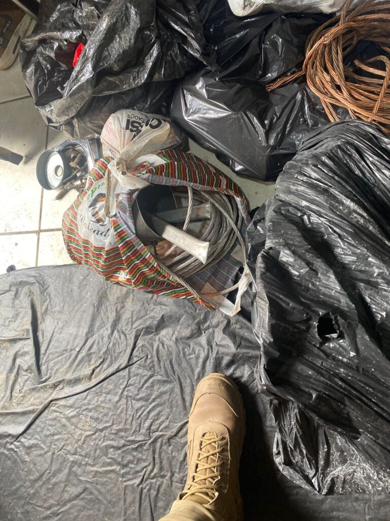 Durante a vistoria, foram apreendidos sete holofotes de alumínio, grande quantidade de fiação residencial e pública, posteriormente restituída à Celesc, além de três carrinhos de supermercado furtados, utilizados por criminosos para o transporte de fios e sucatas. Três ligações clandestinas de energia elétrica (“gatos”) também foram desativadas. Um dos responsáveis por um comércio informal de sucata foi preso em flagrante pelo crime de receptação.