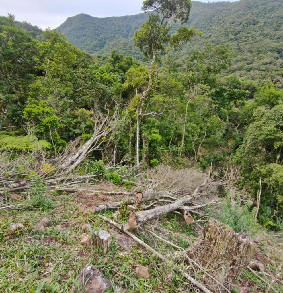 A Polícia Militar Ambiental flagrou um caso de desmatamento no município de Jacinto Machado durante ação de fiscalização ambiental. Após levantamento técnico realizado no local, foi constatada a supressão irregular de vegetação nativa do bioma Mata Atlântica em diferentes áreas da propriedade vistoriada.