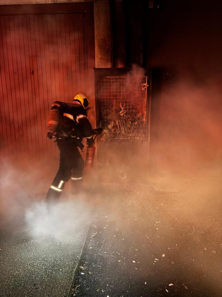 No combate inicial, foi utilizado um extintor de CO₂ para abafar as chamas e resfriar a estrutura. Em seguida, os bombeiros aplicaram pó químico seco para eliminar possíveis focos remanescentes e interromper a reação em cadeia. Como ainda havia pequenas reignições devido ao calor acumulado, jatos intermitentes de água foram utilizados após a confirmação da ausência de energia elétrica, garantindo o completo resfriamento do quadro.