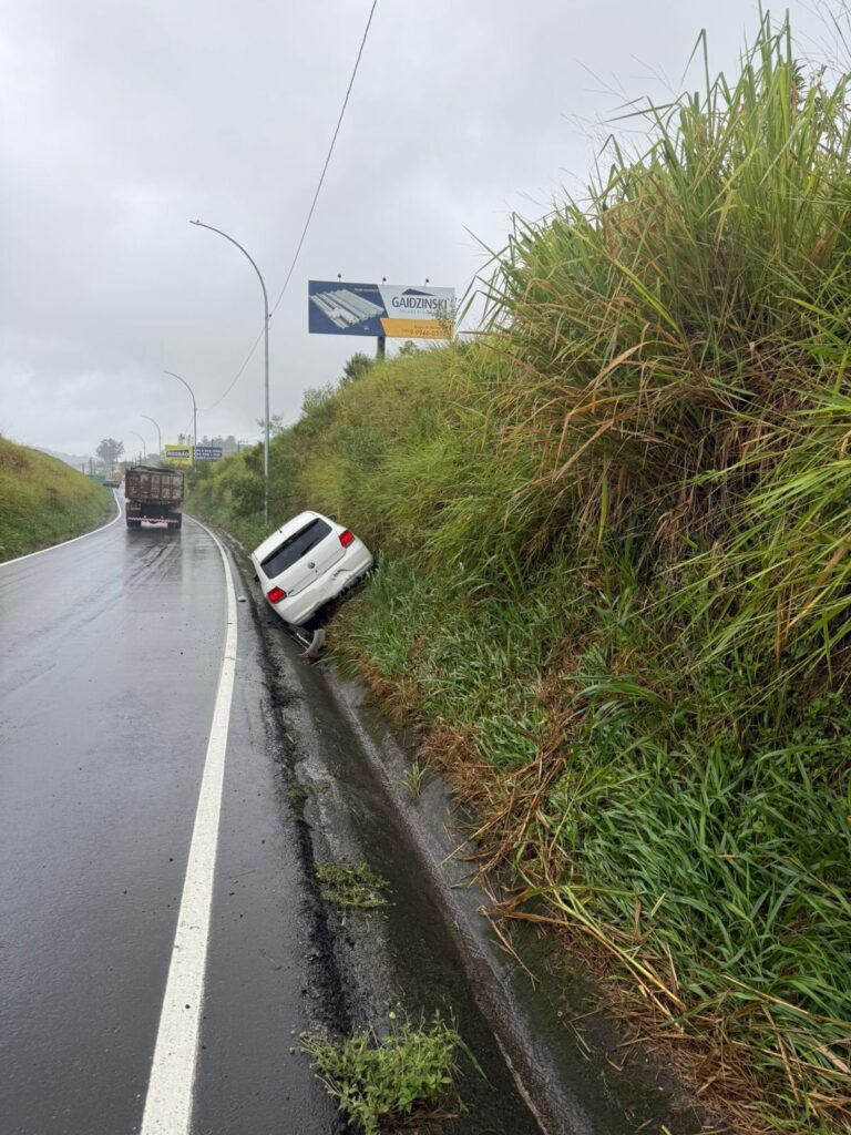 Uma saída de pista foi registrada na BR-101, no km 350, na entrada de acesso sentido sul do município de Jaguaruna, mobilizando a equipe dos Bombeiros Voluntários nesta segunda-feira (6).