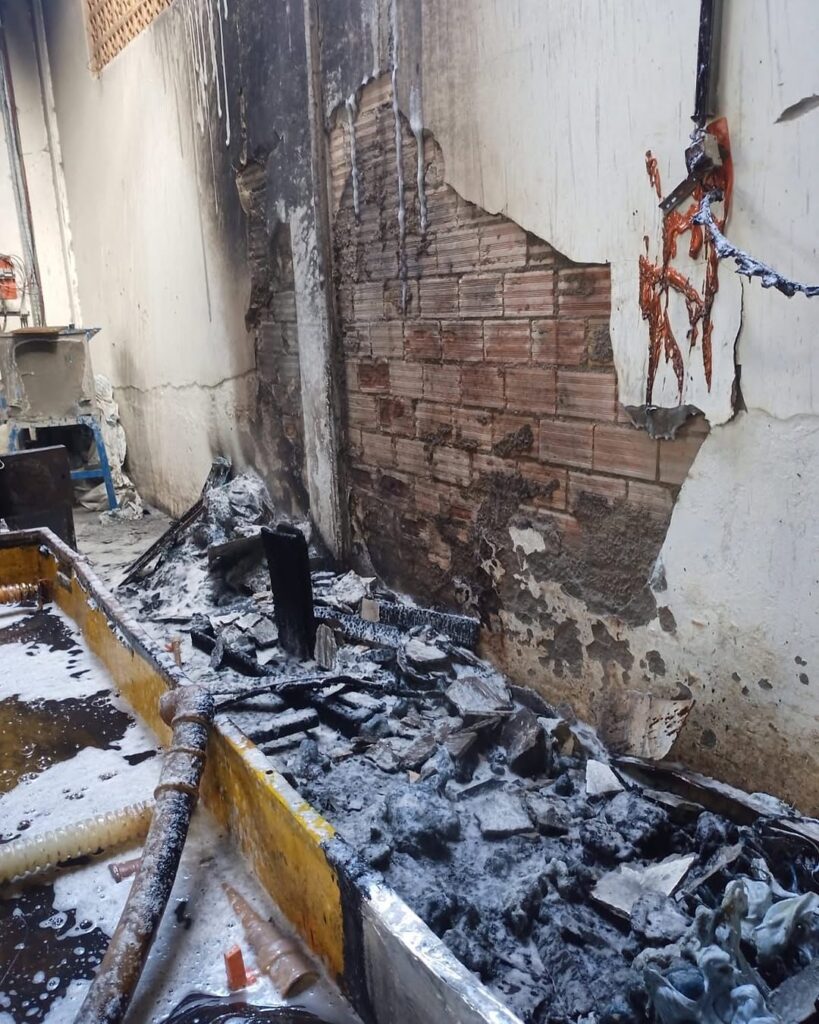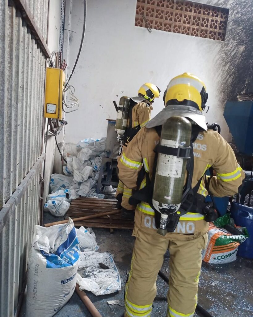 Um trabalhador foi hospitalizado após inalar muita fumaça, durante incêndio registrado em uma empresa de plástico, localizada na Estrada Geral Rio Perdoná, em Treze de Maio. A ocorrência foi registrada neste sábado (5).