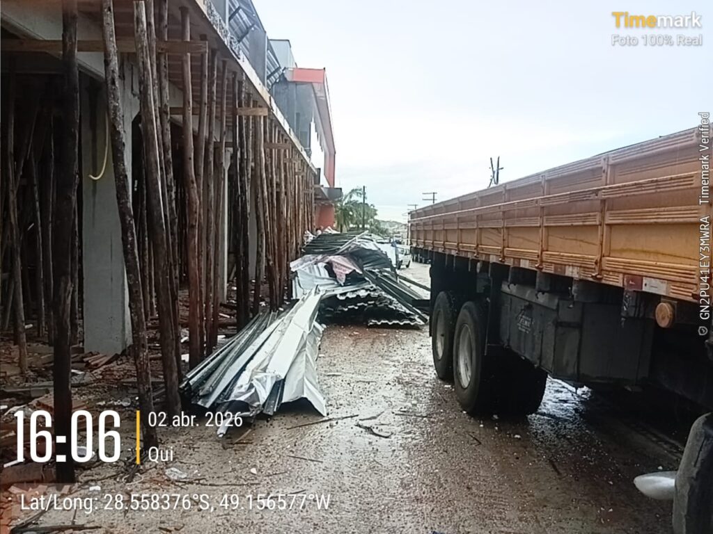 De acordo com os primeiros levantamentos, houve queda de diversas árvores e registros de destelhamentos em galpões e residências. Equipes da Defesa Civil municipal estão em campo avaliando a extensão dos prejuízos e prestando apoio às áreas afetadas.