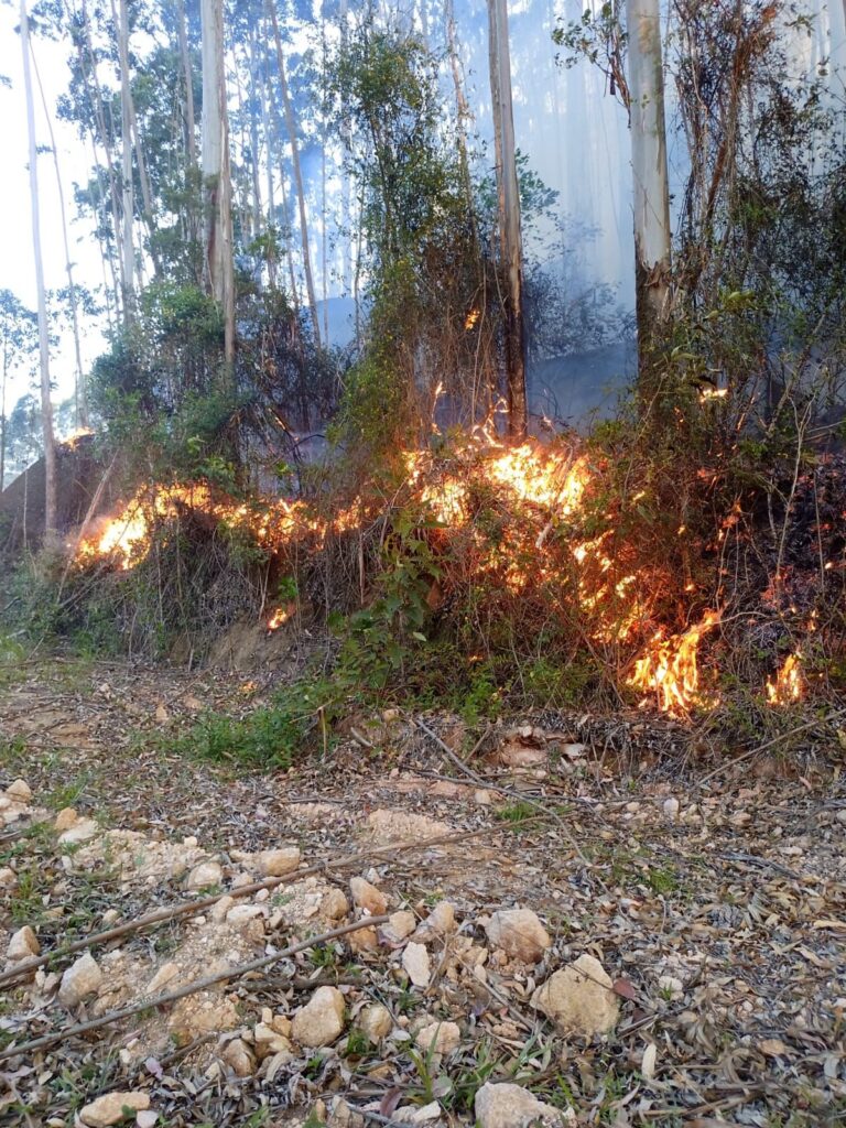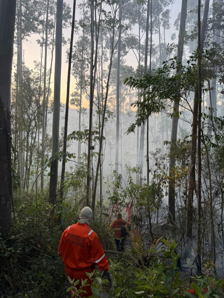 Cinco bombeiros atuaram no combate às chamas utilizando ferramentas manuais e abafadores. A operação durou aproximadamente seis horas, até que o incêndio fosse completamente controlado.