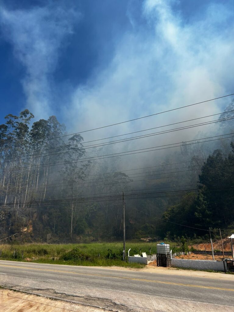 Um incêndio em vegetação de grandes proporções mobilizou os bombeiros comunitários de Jaguaruna na tarde dessa quarta-feira (15), às margens da Rodovia Ismael Tomaz Preve, trecho da SC-441, no bairro Rio Salto, em Treze de Maio.