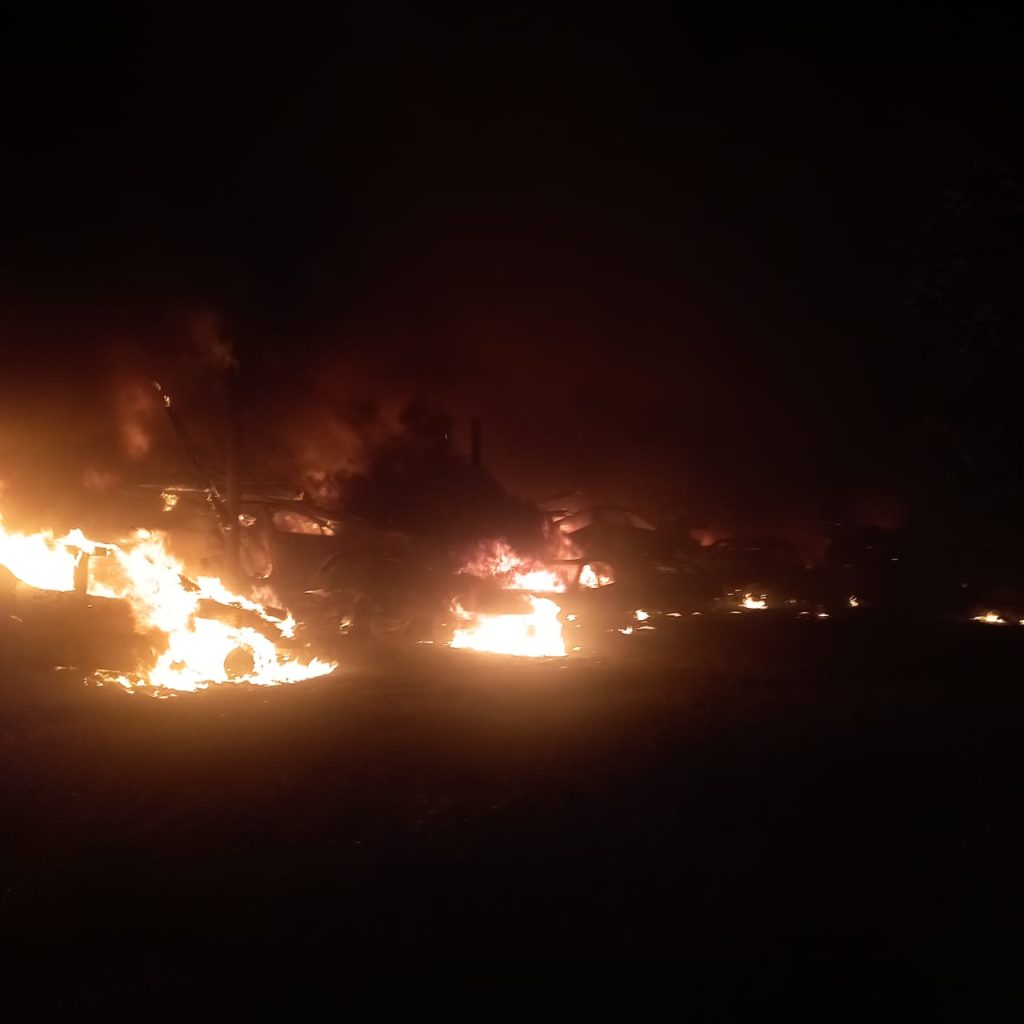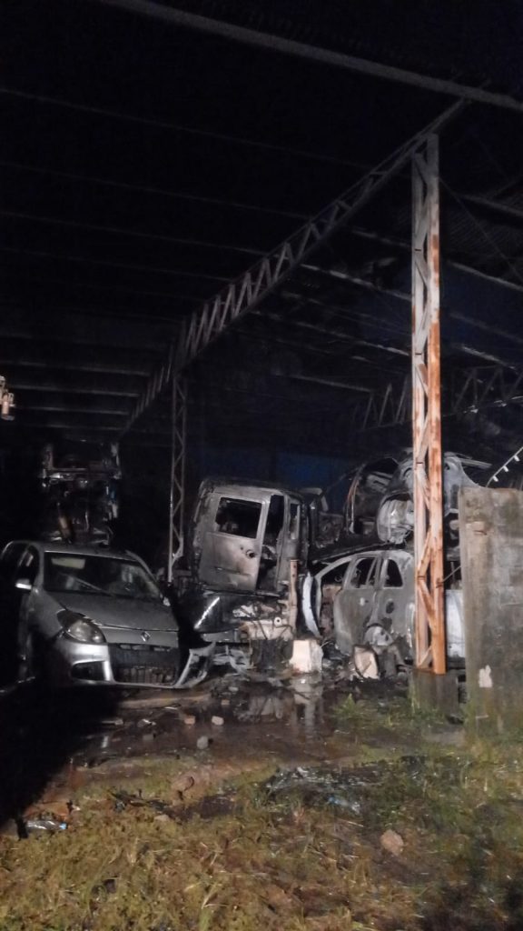 Bombeiros de quatro municípios levaram cerca de 4h30 para controlar um incêndio de grandes proporções em um ferro velho, na noite desta quinta-feira (27), na SC-445, Rod. Dep. Paulinho Burigo, no bairro Liri em Içara. Não houve vítimas.