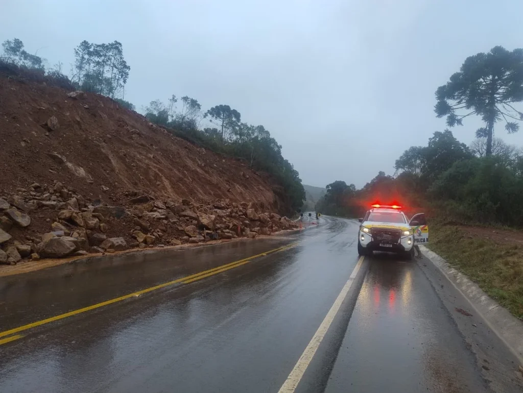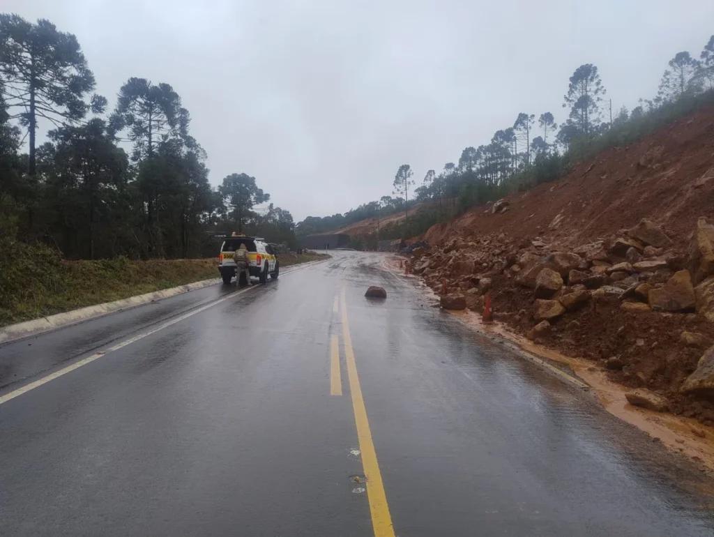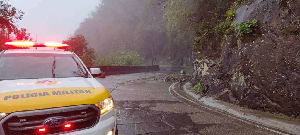 A chuva forte que atinge Santa Catarina neste fim de semana provocou deslizamentos de pedras em pontos críticos das serras do Rio do Rastro, em Lauro Müller, e do Avencal, em Urubici. A Polícia Militar Rodoviária (PMRv) reforça a orientação para que os motoristas redobrem os cuidados durante a travessia pelas rodovias.