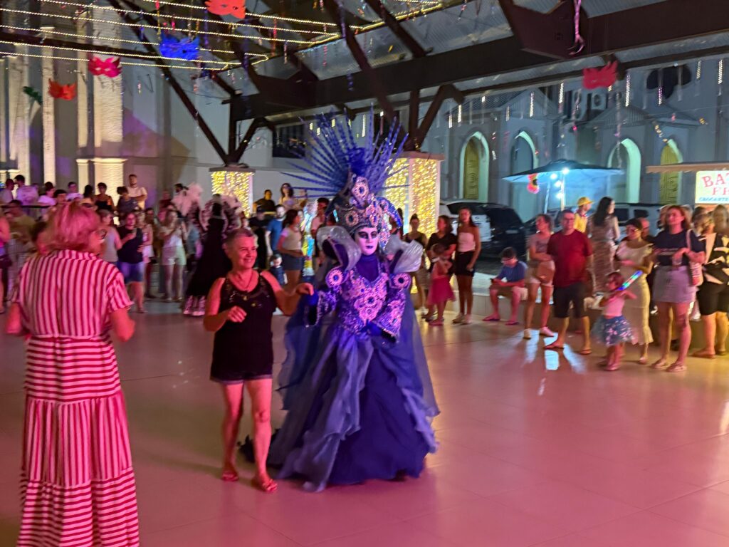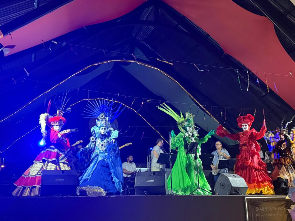 A banda YES Brasil embalou a noite com marchinhas clássicas e outros ritmos que atravessam gerações, resgatando músicas que marcaram a infância de muita gente e colocando todo mundo para dançar.