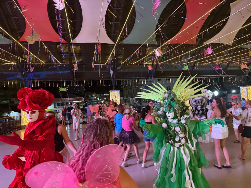 A banda YES Brasil embalou a noite com marchinhas clássicas e outros ritmos que atravessam gerações, resgatando músicas que marcaram a infância de muita gente e colocando todo mundo para dançar.