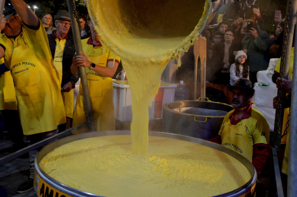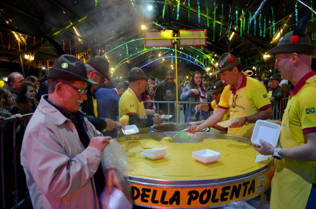 No palco a programação contou Show do Coral Peregrinos da Montanha, de Novo Veneza, e do tradicional “Tombo da Polenta”, ao som de “La bella polenta”, realizado pelo Grupo Amici Della Polenta, acompanhado pelo Grupo de Cantores Bellunesi. Logo depois subiu ao palco a cantora Isabeli Moro.